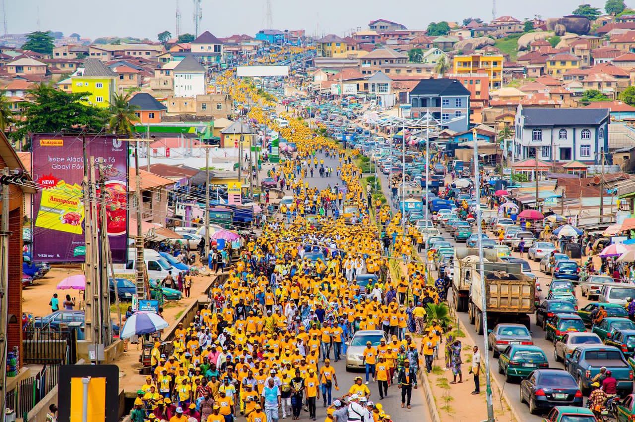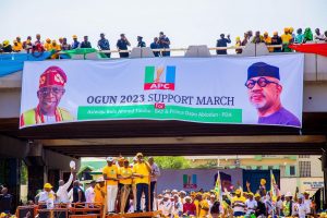 Thousands of members of the All Progressives Congress (APC) in Ogun State, on Tuesday, staged a mega walk to express their support for the party’s presidential candidate, Bola Ahmed Tinubu and Governor Dapo Abiodun at a mega rally held in Abeokuta, the state capital.