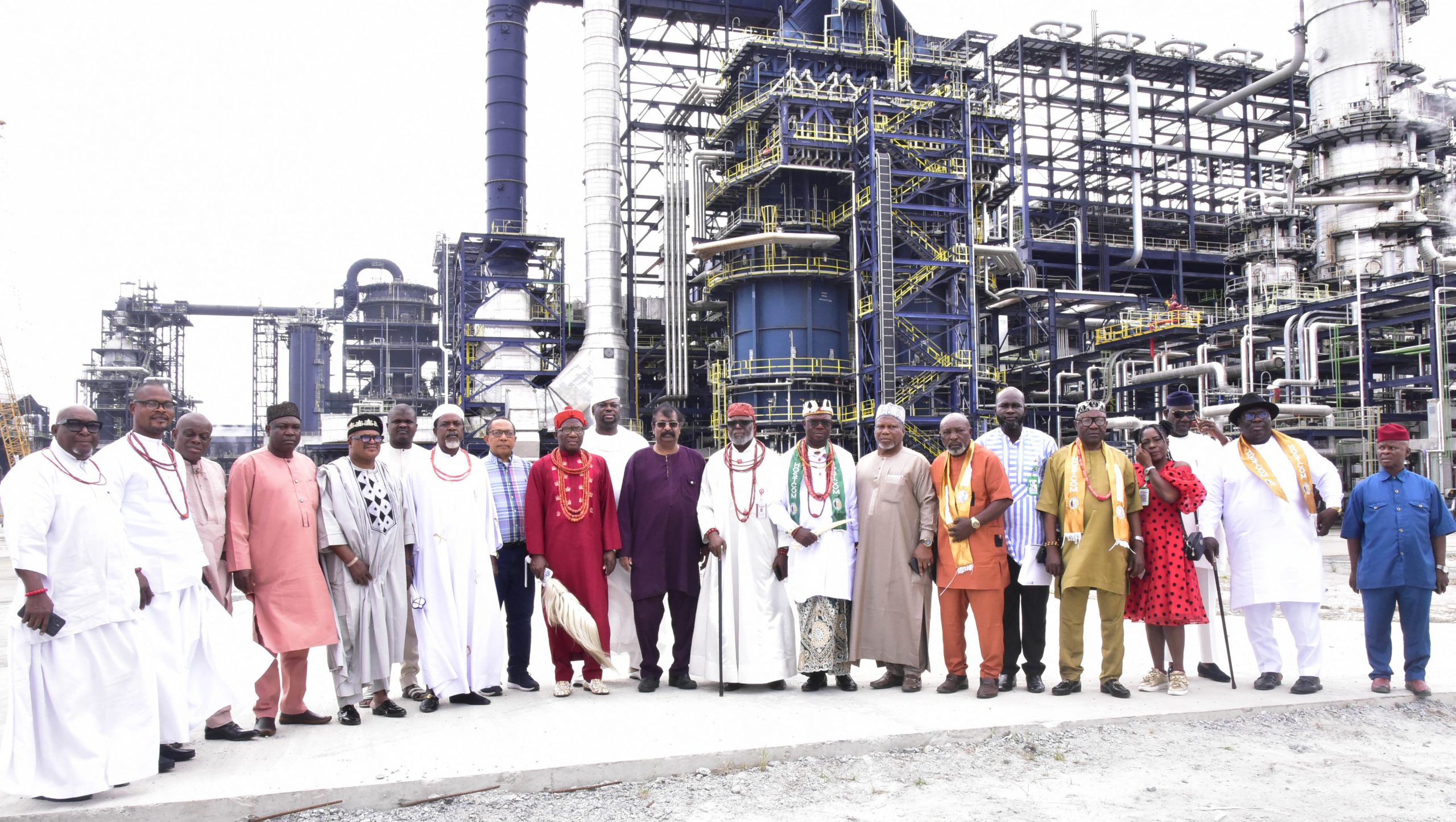 The National President of HOSTCOM, Dr. Benjamin Tamaramiebi, accompanied by his executives and traditional rulers from the Niger Delta region, toured the Dangote Petroleum Refinery & Petrochemicals and the Dangote Fertiliser Limited complex. Notable traditional rulers included the Chairman of the Niger Delta Monarchs Forum, HRM Frank Okorakpo; Deputy Chairman of the Traditional Rulers of Oil Mineral Producing Communities of Nigeria (TROMPCON), HRM Obafemi Ogaro; and Egbesuwei Gbanraun X Agadagba Pere, HRM (Capt) Frank Okiakpe, among others