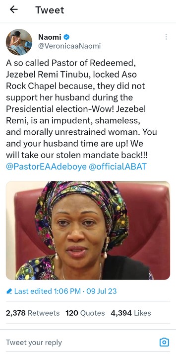 Oluremi Tinubu Responds To Rumour Of Aso Chapel Closure