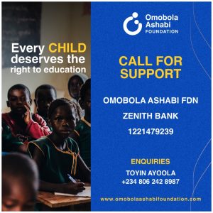 The Omobola Ashabi Foundation has announced a fundraising event for an initiative targeted at breaking the cycle of poverty by helping children and women in marginalised communities access quality education and training towards the possibility of a better life.