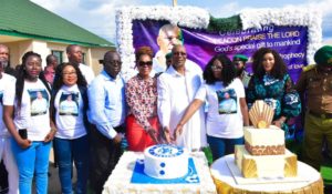 The highlight of the event was the cutting of the birthday anniversary cake by the Deputy Governor, Deacon Kingsley Otuaro flanked by his wife and other dignitaries.