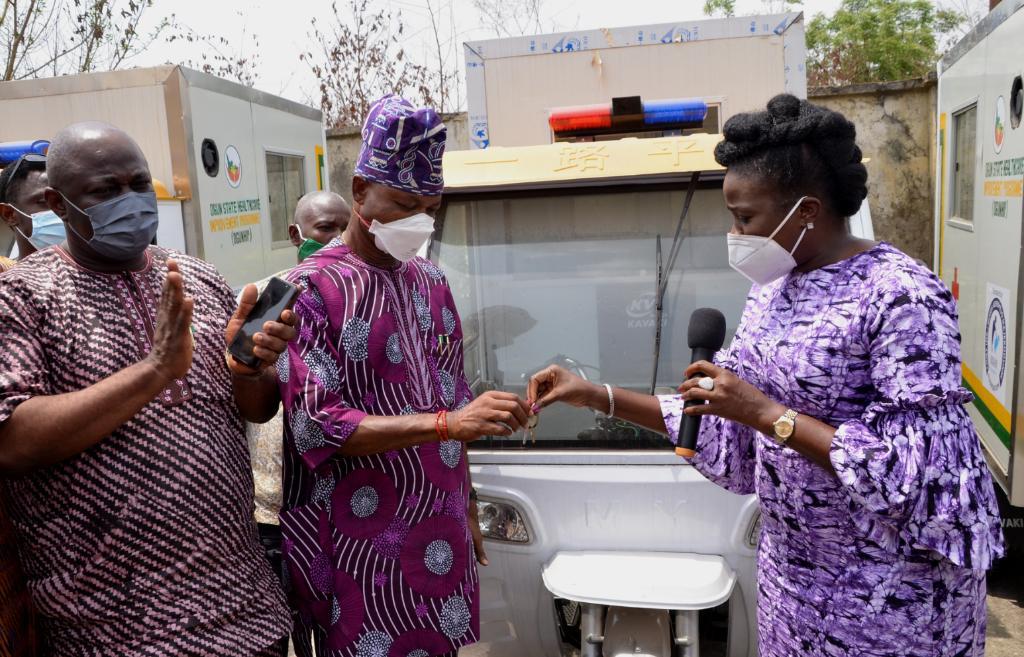 Commissioner for Health, Dr. Tomi Coker at the distribution ceremony held at the Obas Complex, Oke Mosan, noted that government identified that 70% of women who died during child birth was as a result of lack of access to intervention which usually arise due to lack of transportation and access from PHCs to general hospitals, saying the introduction of the Tricycle Ambulances would put an end to future occurrences.
