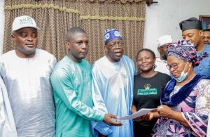 The National Leader of the All Progressives Congress (APC) and presidential hopeful of the party, Asiwaju Bola Ahmed Tinubu, on Sunday evening paid a condolence visit to the home of late Professor Tunde Samuel, a member of the Governor’s Advisory Council (GAC), who passed on recently.