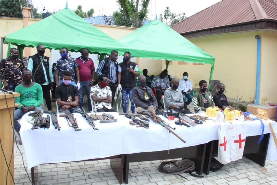 Exhibits recovered include: 4 Ak47 Rifles, 1 FMC rifle, 1 Pump Action Gun, 2 double barrel guns, 1 Beretta pistol, 4 AK47 Magazine, 6 cartridges, 378 Rounds of live Ammunition, 1 Network Jammer (anti-tracker device), Others.