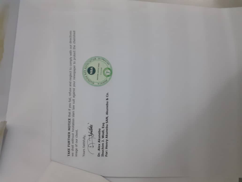 Premium Times was given seven days to retract the defamatory publication or risk being sued for damages.