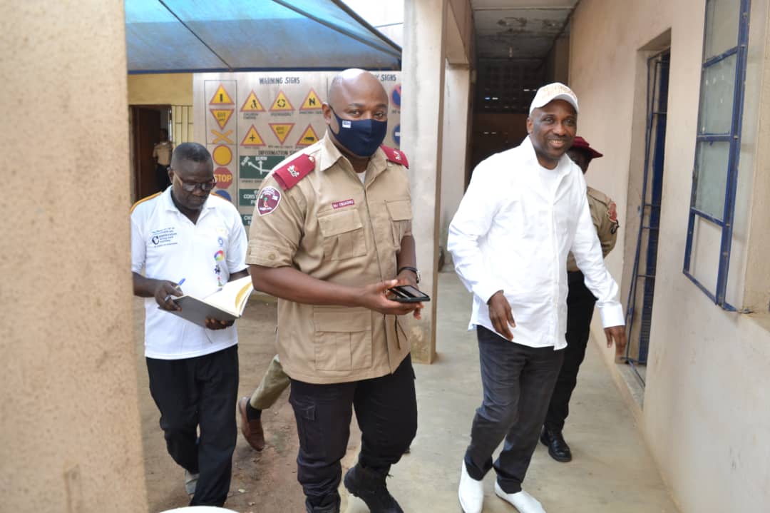 In his visit to the police stations and FRSC offices, He mentioned that he will be supporting the police force in renovating some of the police stations burnt by hoodlums during the End SARS protest.
