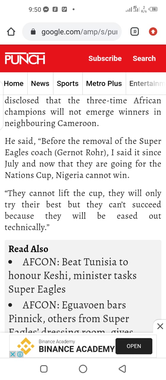Meanwhile, Popular prophet, Primate Elijah Ayodele had revealed in December 2021 that the super eagles will not lift the trophy at AFCON.