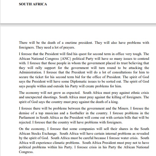 The Leader Of INRI Evangelical Spiritual Church, Primate Elijah Ayodele has for the umpteenth time proven his call as a true man of God with the fulfilment of his prophecy in South Africa.