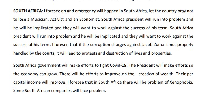 Meanwhile, a popular Nigerian prophet, Primate Elijah Ayodele had prophesied this current situation being faced in South Africa. His prophecy on South Africa is contained in his 27th annual book of prophecy titled Warnings To The Nations released on Friday, 10th Of July 2021.