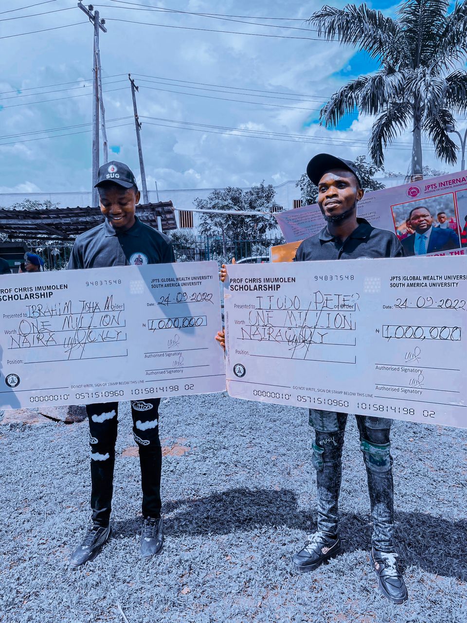 Two graduates of the Institute, Toha Ibrahim and Peter Ojogunwa both won one million naira each from Prof. Imumolen’s support system today for being quality youths and adding value to the system.