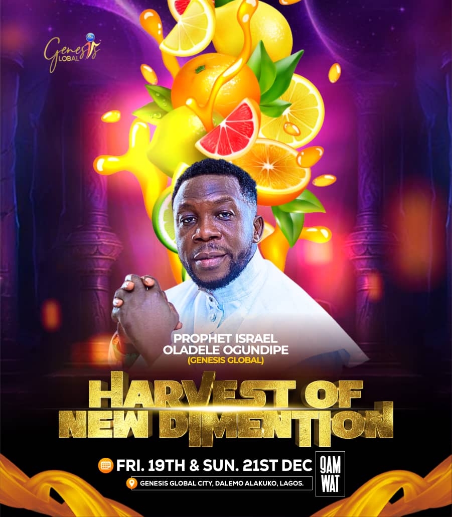 According to Prophet Israel Oladele Ogundipe, also known as Genesis, in a statement to his media aide, Oluwaseun Fabiyi, the Genesis Global Church Annual Harvest is a time for people to express gratitude to God for a fruitful year at Genesis Global City, and also a time for people to experience God’s power, as testified by previous celebrations.
