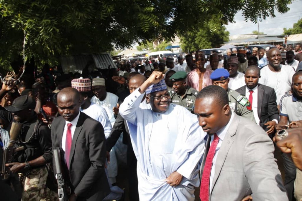 The President of the Senate, Ahmad Lawan, on Monday, received a rousing welcome from an excited crowd in his constituency in Yobe state.
