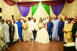 The wedding, which took place at Basilica of Grace Anglican Church, Gudu District, Abuja, also attracted top chieftains of the ruling All Progressives Congress (APC) including Deputy Speaker of the House of Representatives, Benjamin Kalu; Governor Francis Nwifuru of Ebonyi State, and Minister-designate, Senator David Umahi, among other guests, who graced the occasion in solidarity with the Ekweremadus.