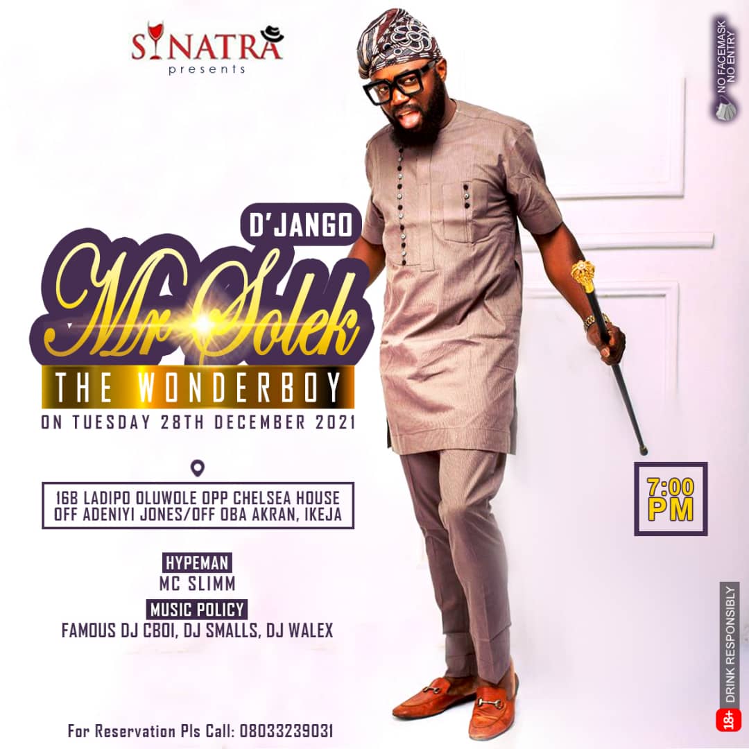 Leading mainland hospitality and entertainment outfit, Sinatra’s Place is set to celebrate its second year as a brand and based on feelers all over social media, leading entertainers like Mayegun of Yorubaland, K1 De Ultimate; songsters Ludare and Mr Solek have been confirmed as those who would create the feel-good atmosphere Sinatra patrons are accustomed.