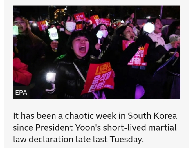 A vote to impeach Yoon last weekend failed after members of his ruling party boycotted it. However, opposition lawmakers have vowed to hold weekly impeachment votes until he steps down. North Korean state media has condemned the martial law attempt, calling it an “insane” move by a “fascist dictator.”