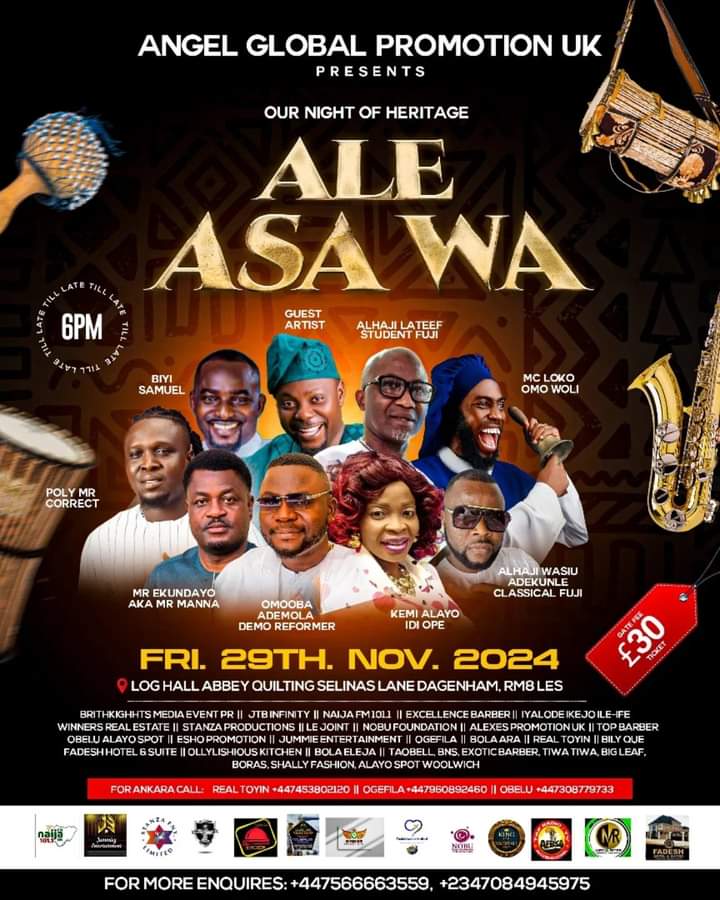 With 30 Pounds entry fee, the organizers have announced that Ankara fabrics are available for smooth access to the event venue and numbers to call are +44745382120, +447960892460, +447308779733. Seasoned Nollywood actor, Kunle Afod, will feature as special guest artiste.