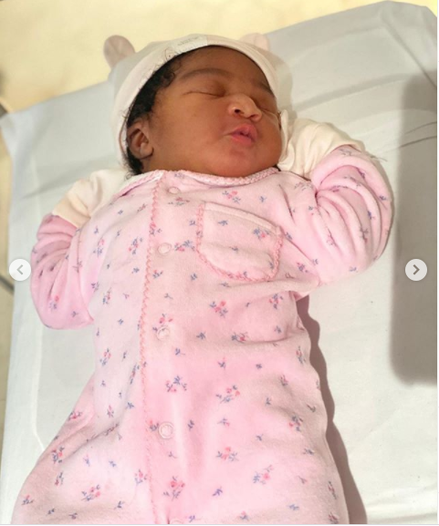 Sharing photos of his newborn daughter, the proud father wrote: ‘Another reason to be grateful to God. Thank you, my superwoman @oma_omeruo, it will take the grace of God to stop oh if u keep giving me gorgeous kids like this. I Love you. ‘