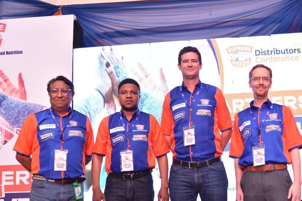 CAPTION:L-R: Chief Operating Officer, Pandagric Novum Ltd, Federico Mendoza, General Manager, Sales and Marketing, Pandagric Novum Ltd, Tunji Osoko, Chief Executive Officer, Pandagric Novum Ltd, Bruce Spain and Chief Financial Officer, Andre Van Der Westhuizen during the Supreme Feeds 2022 Distributors Conference themed: Partners for Growth in Abuja.