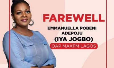 Sadly, popular Max FM OAP, Emmanuella Pobeni Adepoju popularly known “Iya Jogbo”.died as a result of Bronchitis and an enlarged heart. The announcement of the passing on...