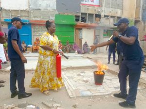 While addressing the Traders, he outlined causative factors of Fire and safety tips while his Men demonstrated how to curtail it in Homes and Markets.