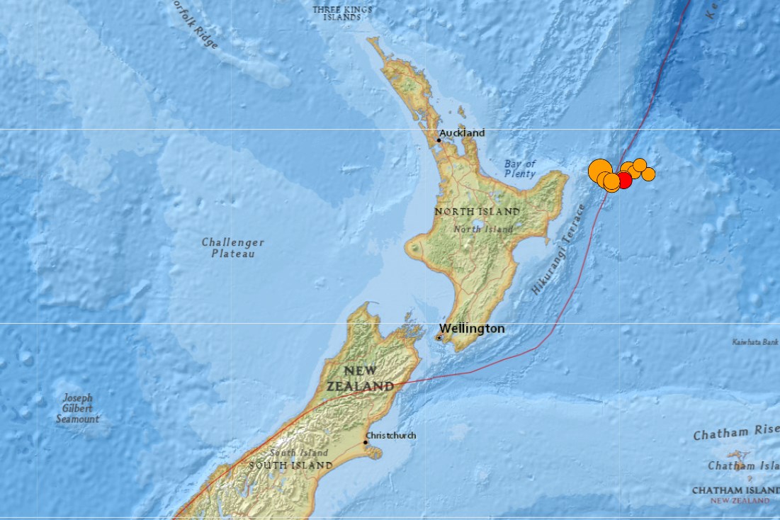 The largest quake struck about 620 miles off the coast of New Zealand. One of the earlier quakes hit much closer to New Zealand and awoke many people as they felt a long, rumbling shaking.