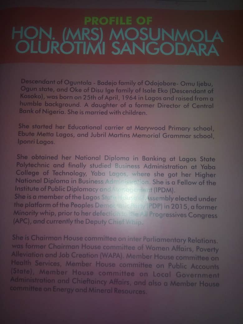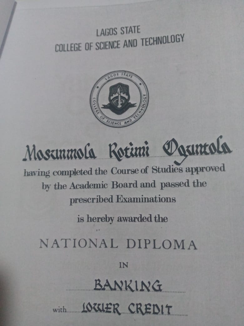 Information at our disposal has it that the female lawmaker reportedly claimed to have attended higher schools in Lagos, starting with the Lagos  State Polytechnic for her Ordinary National Diploma (OND) in Banking  and Yaba College Of Technology (Yaba Tech) for her degree in Business Administration.