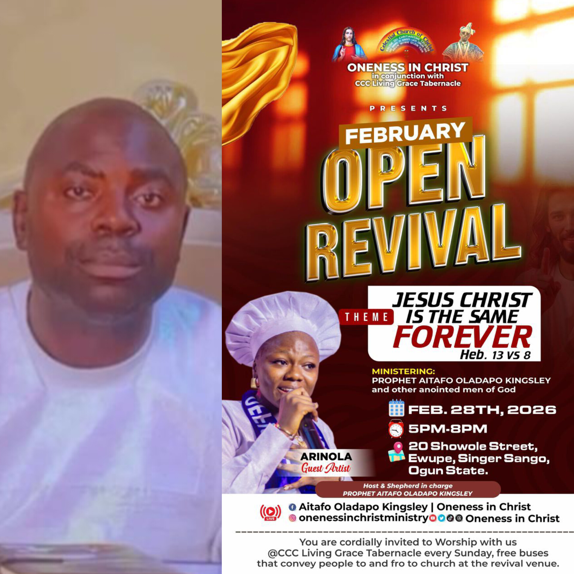 Meanwhile, Prophet Kingsley Aitafo, leader and shepherd in charge of Oneness in Christ, in conjunction with CCC Living Grace Tabernacle, invites everyone to its February Open Revival. It is a prophetic service determined to change lives through miracles, healings, signs, and wonders.