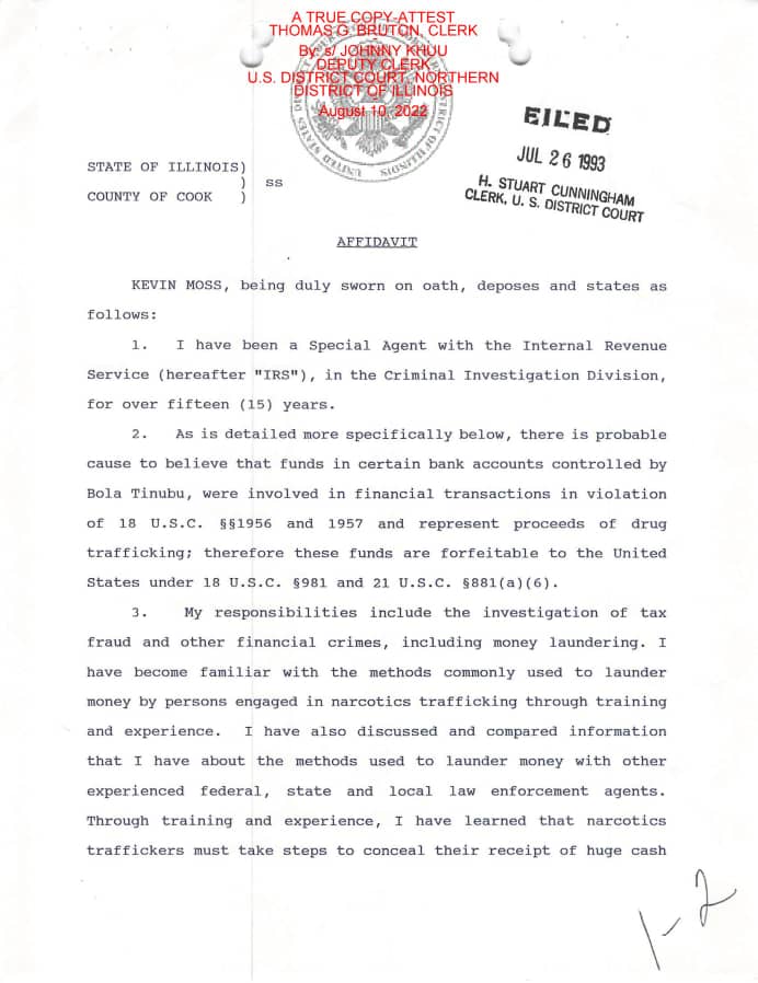 U.S. court releases certified true copies of Bola Tinubu's drug dealing, money laundering case in Chicago.pic.twitter.com/XOr3skuPsE