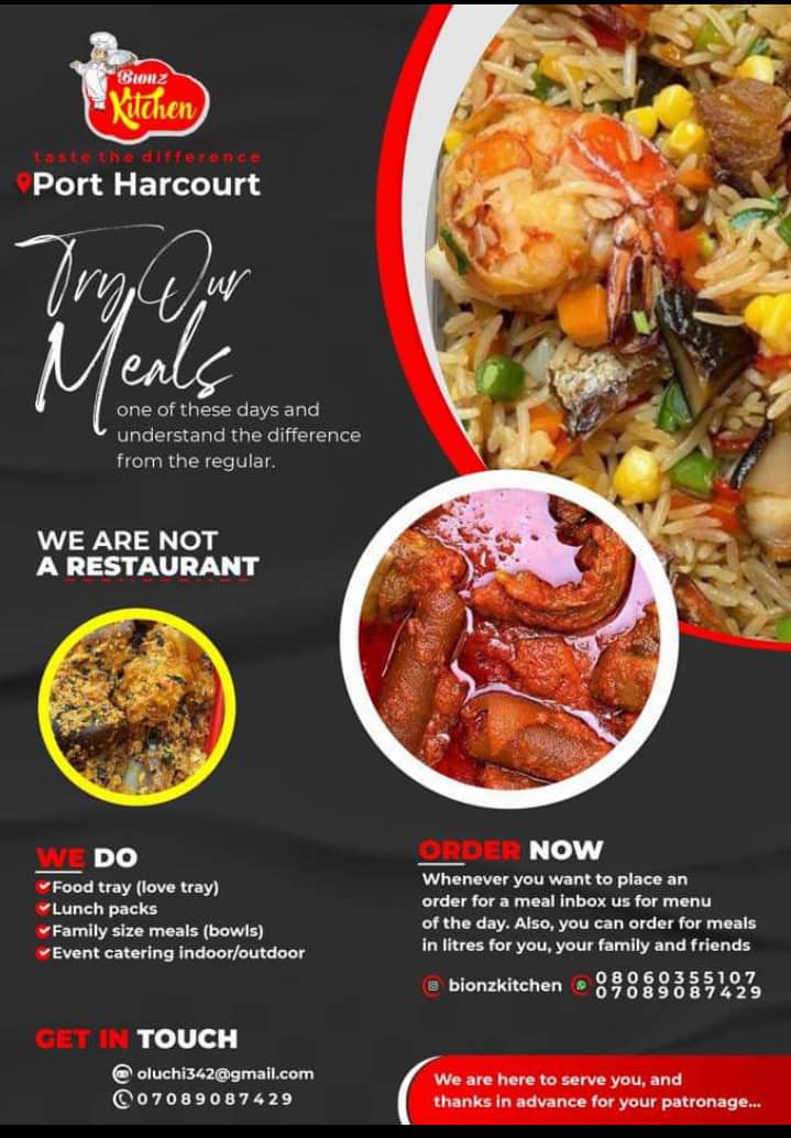 Arguably, Bionz kItchen based in Port Harcourt is not your regular restaurant. Owned and run by delectable chefbion, it’s the haven for tasteful and delicious meals delivered at your doorstep.