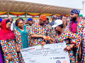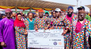 The highpoint of the ceremony attended by teachers from the 16 local government and the LCDAs was the presentation of cheques of N5million each to the best teachers in both Primary and secondary schools categories. The beneficiaries were Osaranmaye Yetunde of St. Marks Nursery & Primary School, Ilupeju Ekiti for the Primary category and Owoseeni Tolulope of Harding Memorial College, Ado Ekiti for the Secondary Category.